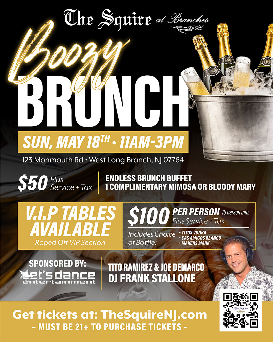Back by popular demand The Squire Spring Boozy Brunch kicks off 11am on Sunday, May 18th in partner ship with Let’s Dance Entertainment featuring DJ Frank Stallone